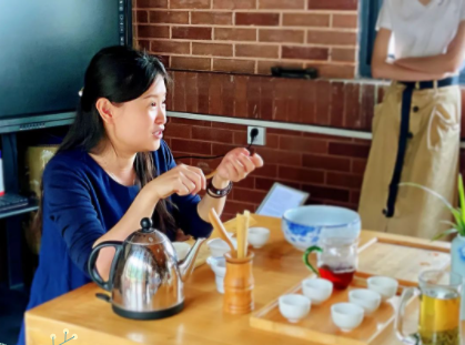 紧接着,身着汉服的张欣怡然同学向大家介绍了茶文化,从茶的起源、发展到其功效向大家展现了茶的魅力,同时校友们也分享了自己对于茶的看法‘茶,作为一种新式社交符号,能够快速的拉近人与人之间的距离。