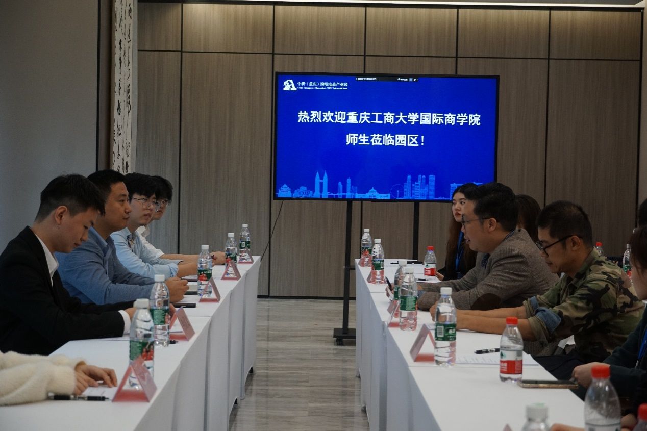 学院师生到达公司后,得到了冉清文校友和中新(重庆)跨境电商项目王利刚总经理的热情接待。接着,在王立刚总经理的带领下,学院师生一起参观了产业园并听取了有关中新(重庆)跨境电商产业园的详细介绍。