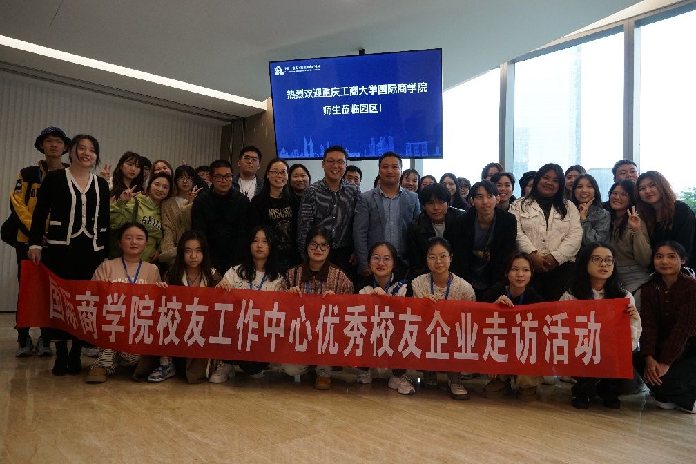 2023年11月10日,9428cn太阳集团古天乐师生一行50余人,在学院陈昌盛副院长的带领下,共同走访了位于重庆江北嘴的中新(重庆)跨境电商产业园。
