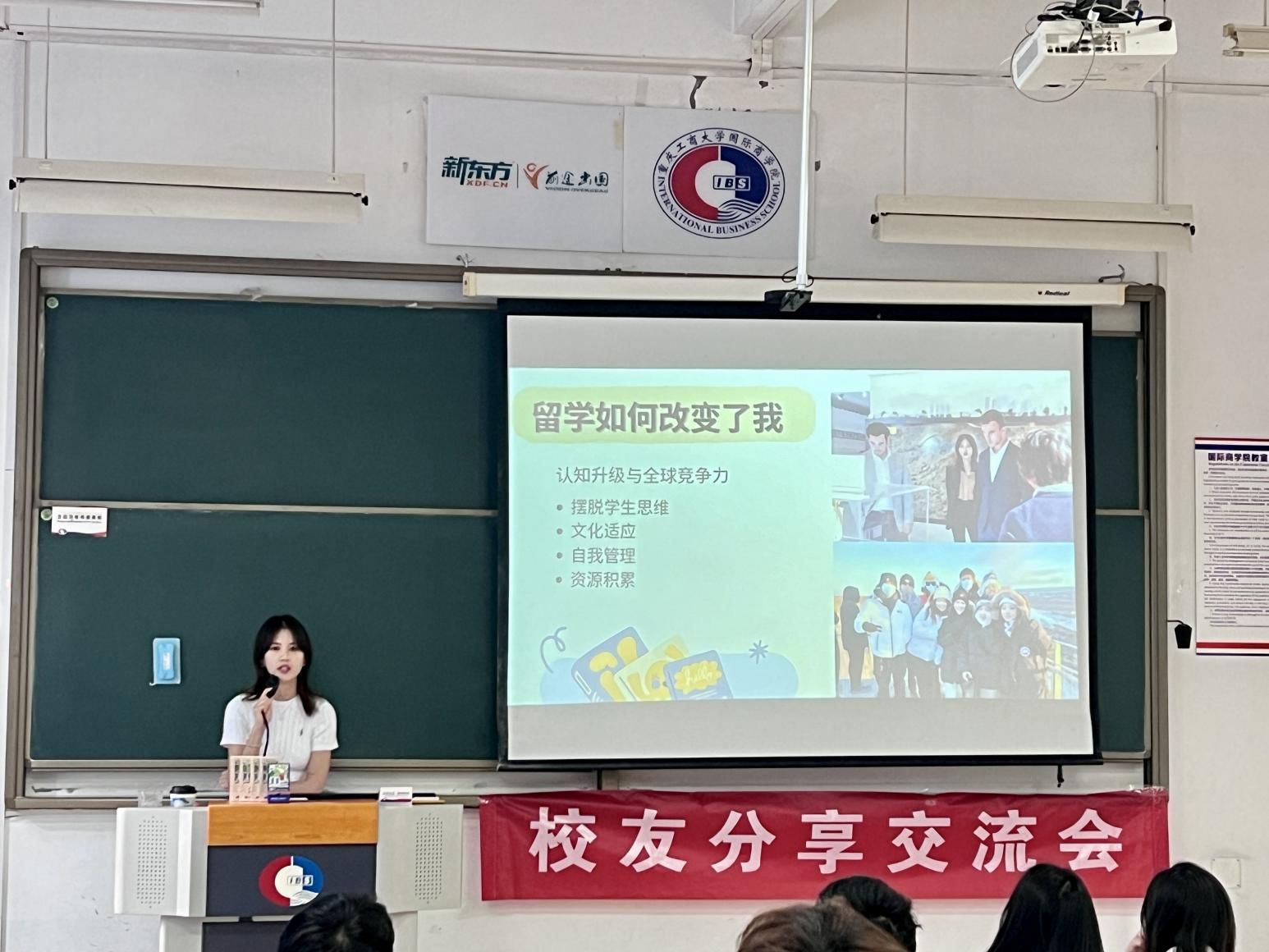 在分享跨国求学和求职经验时,黄子维校友结合自身丰富的实践经历,强调了个人综合能力在职场中的重要性。她分享了自己在与来自不同国家的同学共同完成作业时,充分展现个人能力并获得大家认可的经历;以及在工作中,凭借出众的个人能力脱颖而出,担任跨国交流项目总助的故事。她向学弟学妹们强调,个人能力不仅是开启职场大门的敲门砖,更是与同事、领导建立信任的桥梁。