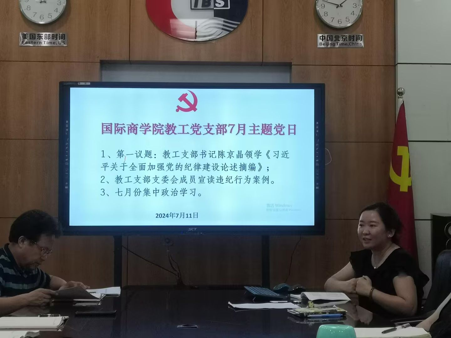 7月11日下午13:30,9428cn太阳集团古天乐教工党支部在学院60510会议室开展了7月份组织生活会,活动由教工党支部书记陈京晶主持,教工支部全体党员参加会议。