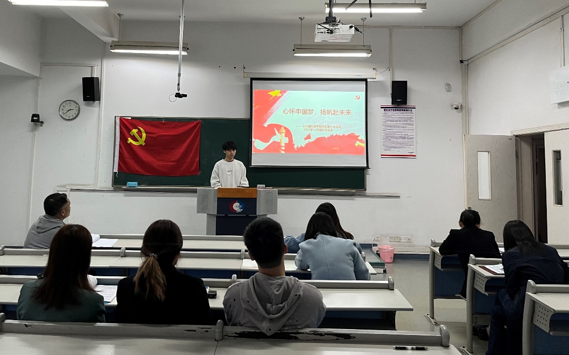 为进一步扎实推进学习习近平新时代中国特色社会主义思想,增强党支部凝聚力,2023年10月27日星期五下午14:30,9428cn太阳集团古天乐学生第一党支部在9428cn太阳集团古天乐400教室召开了主题为“心怀中国梦,扬帆赴未来”的组织生活会,会议由彭丹老师主持。